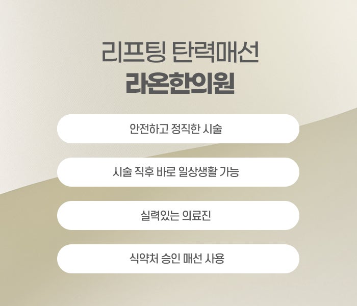 또한 용전동리프팅매선 직후에는 과도한 운동이나 음주, 흡연은 염증 반응을 유발할 수 있으므로 최소한 일주일 이상은 삼가는 것이 바람직합니다. 세안은 다음 날부터 가능하며, 자외선 차단제를 꼼꼼히 바르고 충분한 수분과 영양을 공급해주면 피부 회복이 더욱 빠릅니다. 실은 삽입 후 약 3~6개월 사이에 서서히 체내에서 분해되며, 그 기간 동안 피부는 계속해서 콜라겐을 생성하므로 변화가 점진적이고 자연스럽게 이어집니다. 리프팅을 위한 매선침은 단순한 미용적 시술이 아닌, 피부 구조를 재조직화하고 시간의 흐름에 맞서 싸우는 매우 진보된 한방 미용치료입니다. 나이가 들면서 탄력이 떨어지는 건 단순히 피부 표면이 처지는 문제가 아닙니다. 그 밑에 있는 근막층이 약해지고, 진피층의 콜라겐이 줄어들며, 지방이 아래로 이동하는 복합적인 변화 때문입니다. 매선침은 이 모든 현상을 한꺼번에 타겟팅 할 수 있는 유일한 비수술적 치료로, 외부의 억지스러운 당김이 아닌 피부 내부에서 탄생하는 자생적인 젊음을 되찾는 방법입니다.