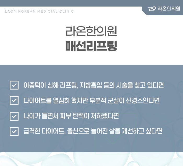 하지만 꾸준한 시술과 함께 적절한 자세 유지, 체중 관리, 근육 강화 운동 등을 병행한다면 이중턱 개선은 물론 전체적인 얼굴 윤곽의 개선도 기대할 수 있습니다. 무엇보다 매선침은 피부와 근육의 자연스러운 반응을 유도하여 시간이 지날수록 더 나은 결과를 도출하는 장점이 있어, 즉각적인 변화를 원하면서도 인위적인 느낌 없이 자연스럽게 개선되기를 원하는 사람들에게 특히 적합한 방법입니다. 감사합니다.