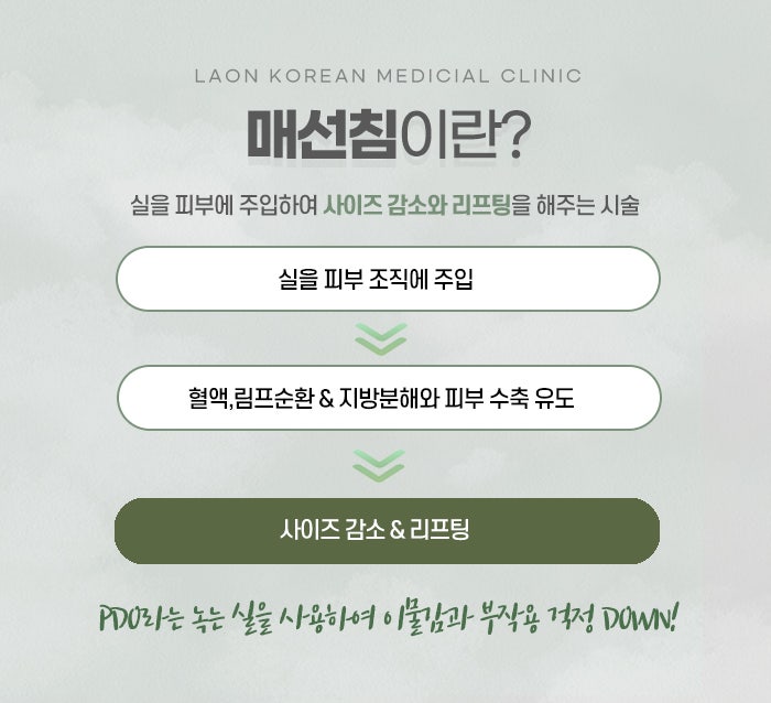 용전동매선다이어트가 다이어트에 도움을 주는 원리 중 하나는 근육의 긴장 조절입니다. 몸의 특정 부위에 과도한 지방이 축적되는 이유는 단순히 지방세포의 수나 크기 때문만이 아니라, 해당 부위의 근육이 비정상적으로 긴장되어 있거나, 반대로 지나치게 이완되어 제대로 기능하지 못하고 있을 가능성도 있습니다. 예를 들어 복부 지방이 잘 빠지지 않는 경우, 복직근이나 측면 복근의 기능이 약화되어 있거나, 내장 기능이 저하되어 복부 순환이 원활하지 않은 경우가 많습니다. 이때 매선을 복부에 삽입하면 해당 부위의 근막을 자극하여 근육의 긴장을 조절하고, 주변 혈관과 림프의 순환을 개선하여 지방 대사와 노폐물 배출이 원활하게 이루어지도록 유도할 수 있습니다. 또한 실이 일정 기간 동안 피부와 피하 조직을 지지하면서 근육의 움직임을 바로잡고, 자세의 변화를 유도하기 때문에 체형이 자연스럽게 교정되고 지방이 축적되지 않는 몸 상태로 바뀌게 됩니다.