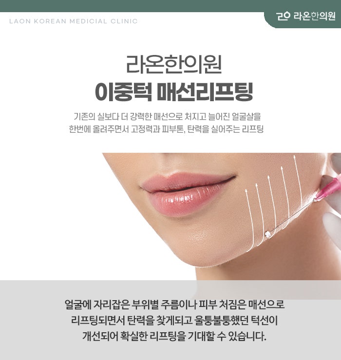 매선 요법은 이중턱 개선을 위한 비침습적이고 자연친화적인 접근 방식으로, 다양한 원인에 의해 형성된 턱 밑 지방과 처짐, 근육 불균형, 부종, 피부 탄력 저하 등을 복합적으로 개선할 수 있는 매우 유용한 치료법입니다. 특히 인위적인 변화가 아닌 본연의 얼굴 윤곽을 살리면서 건강하고 조화로운 인상을 되찾고자 하는 사람들에게 큰 도움이 됩니다.