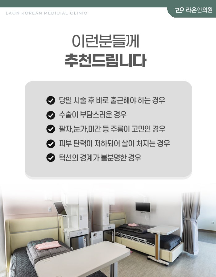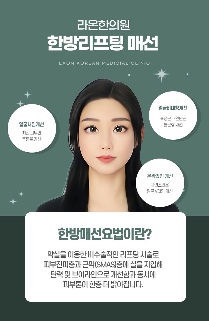 대전이중턱매선치료는 현대 한방 미용의학에서 다양하게 활용되는 시술 중 하나로, 이중턱 개선을 위한 방법으로 많은 관심을 받고 있습니다. 매선 요법은 침술과는 다른 방식으로, 인체에 삽입되는 생체흡수성 특수 실을 이용하여 피하조직이나 근육층에 미세한 자극을 지속적으로 가함으로써 해당 부위의 탄력 회복, 순환 개선, 지방 분해 유도 등에 관여하게 됩니다. 이러한 특성은 단순한 피부 처짐 개선이나 리프팅을 넘어서, 복합적인 원인에 의해 발생하는 이중턱 현상을 보다 체계적으로 개선하는 데 기여할 수 있습니다. 이중턱은 그 자체로도 외모에 큰 영향을 미치지만, 동시에 나이 들어 보이는 인상이나 피로한 느낌을 줄 수 있어 심리적으로도 자존감에 영향을 미치는 요소 중 하나입니다.