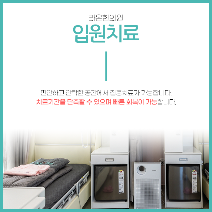 숨겨진 손상이 더 큰 문제로 발전하여 디스크 질환, 만성 신경통, 다른 합병증으로 이어지는 것을 예방할 수 있습니다. 집중적인 케어와 회복 환경은 증상이 호전되는 속도를 앞당길 수 있으며 이를 통해 빠른 복귀를 기대할 수 있습니다. 감사합니다.