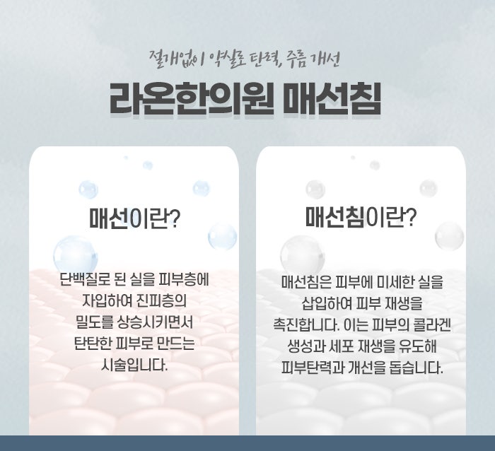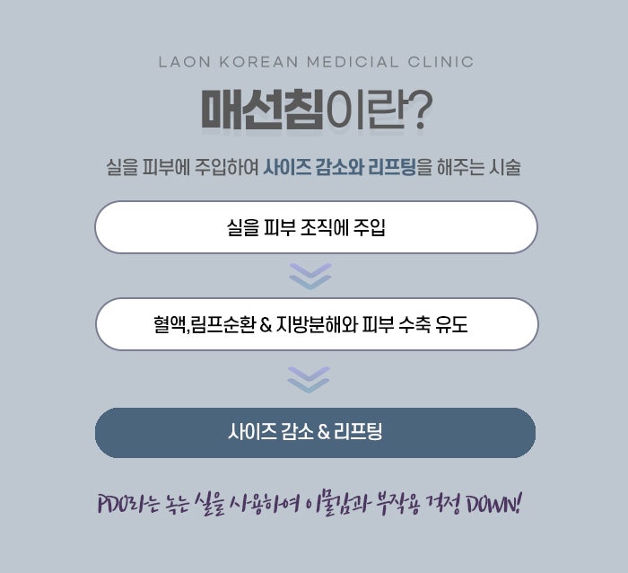 반면, 매선요법은 실을 피부에 삽입하는 방식으로 자연스러운 리프팅을 제공하며, V라인을 형성하는 데도 매우 자연스럽고 세련된 결과를 얻을 수 있습니다. 또한, 매선이 피부 속에서 콜라겐을 자극하여 피부가 더욱 탄력 있게 변하며, 자연스럽고 부드러운 얼굴 라인을 만들어줍니다. 매선요법은 얼굴뿐만 아니라 몸의 다양한 부위에도 적용할 수 있는 장점이 있습니다. 예를 들어, 팔뚝, 복부, 허벅지 등 몸의 지방이 축적된 부위에 매선요법을 적용하여 지방을 분해하고, 피부를 리프팅해줍니다.