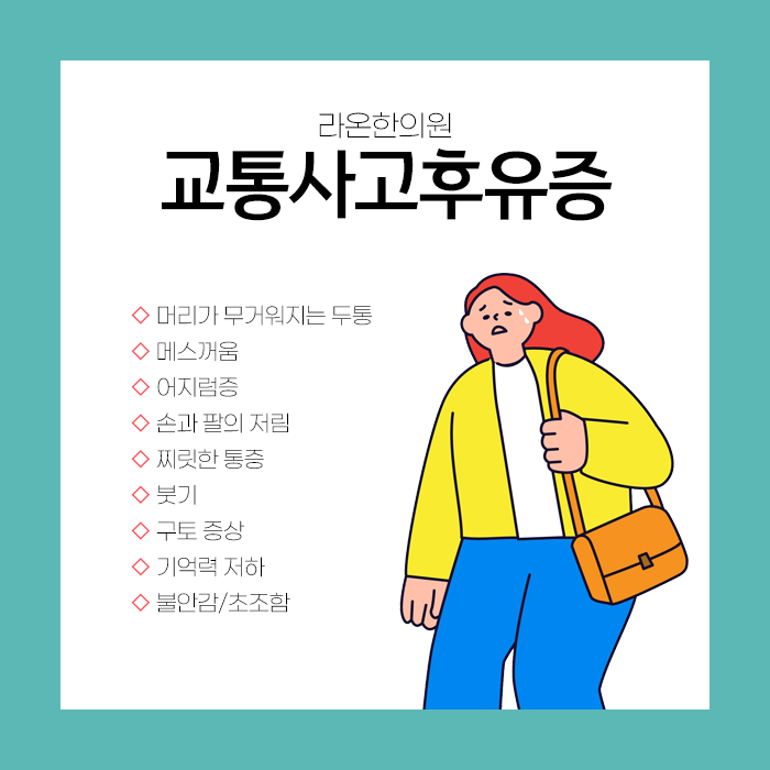 사고 직후에는 즉각적인 불편함이나 통증이 없다고 해서 안심해서는 안 됩니다. 내부 손상들은 시간이 지나면서 여러 가지 후유증으로 발현되어 건강 상태를 악화시킬 수 있음을 알아두셔야 합니다. 몸의 가장 깊숙한 곳까지 파고들어 다양한 문제를 일으킵니다.
