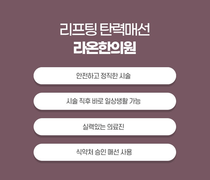 결론적으로 매선요법은 얼굴 처짐 개선에 있어 비수술적 대안으로 자리매김하고 있습니다. 단순한 외형 개선을 넘어 피부와 근육, 결합조직의 건강을 전반적으로 회복시키는 시술로서, 나이가 들면서 자연스럽게 생기는 피부의 노화 현상을 되돌리려는 이들에게 큰 도움이 될 수 있습니다. 하지만 매선요법은 어디까지나 하나의 치료 수단일 뿐, 과도한 기대보다는 적절한 식생활, 수면, 스트레스 관리와 병행할 때 가장 이상적인 결과를 얻을 수 있습니다.