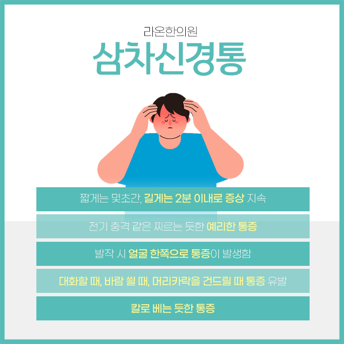 통증이 너무 심해 음식을 제대로 먹지 못하거나 말을 하기 힘들어지면서 영양 부족이나 사회생활의 어려움까지 겪을 수 있으므로 조기에 정확한 진단을 받고 치료를 시작하는 것이 중요합니다. 이 신경은 세 갈래로 나뉘기 때문에 삼차라는 이름이 붙었습니다.