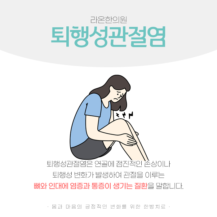퇴행성관절염이라고 불리는 질환은 관절을 보호하는 연골이 손상되거나 퇴행성 변화를 겪으면서 발생하는 만성적인 진행성 질환입니다. 관절염은 한 번 발생하면 완치가 어렵고 진행성 질환이므로 조기에 발견하여 대전 무릎관절염치료와 관리를 시작하는 것이 중요합니다.