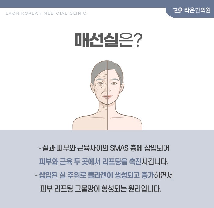 이처럼 복합적인 원인으로 발생하는 용전동처짐살개선을 위해 많은 방법이 시도되고 있지만, 그중에서도 최근 주목받는 비수술적 시술이 바로 매선요법입니다. 매선요법은 단순한 피부 겉면의 변화가 아닌, 피부 속 구조까지 자극하여 리프팅을 유도하는 시술로, 침술의 원리를 바탕으로 하면서도 현대적인 미용 기술이 결합된 방식입니다. 피부 아래 진피층 또는 피하지방층 등에 특수 제작된 녹는 실을 삽입함으로써 피부 내부 조직을 물리적으로 지지해주고, 동시에 자극을 통해 피부 스스로가 회복하려는 반응을 유도하여 자연스럽게 리프팅을 얻는 것이 특징입니다