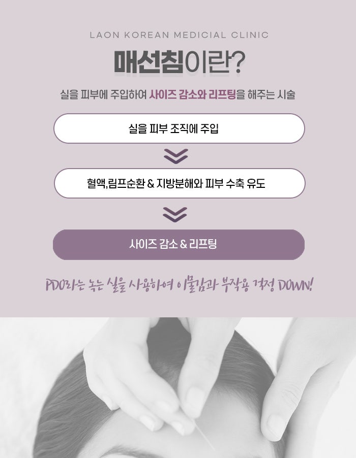 용전동매선다이어트가 지방분해와 다이어트에 도움을 주는 원리는 매우 흥미롭습니다. 시술에 사용되는 특수 실은 인체에 흡수되는 PDO성분으로, 이는 시간이 지나면 자연스럽게 체내에 분해되어 사라집니다. 이 실을 피하지방층 또는 근육층 부근에 삽입하면, 실 자체가 주변 조직을 자극하여 혈액순환과 림프 순환을 촉진하게 됩니다. 순환이 원활해지면 해당 부위의 대사활동이 활발해지고, 체내에 정체되어 있던 노폐물이나 부종이 해소되며, 동시에 지방 세포의 분해와 배출이 원활해지는 환경이 조성됩니다. 또한 매선은 국소 부위에 일정한 자극을 가함으로써 해당 부위의 근육을 강화시키는 것도 기대할 수 있습니다. 특히 복부나 턱선, 허벅지 등 처지거나 탄력이 부족한 부위에 매선을 시술하면, 실이 조직을 지지하고 미세한 수축을 유도하여 해당 부위가 조여지는 느낌을 주게 됩니다.