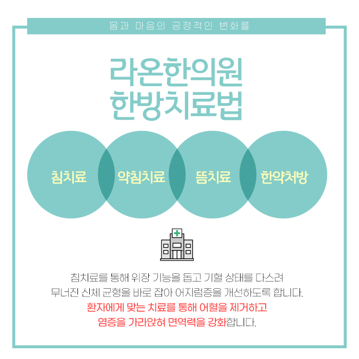침치료는 특정 혈자리에 침을 놓아 몸의 기혈 순환을 원활하게 하고 어지럼증과 관련된 장부 기능을 조절하며 막힌 담음이나 어혈을 제거하는 데 도움을 줄 수 있습니다. 개인의 상태와 체질에 맞는 체계적인 관리와 함께 충분한 휴식, 규칙적인 생활, 식습관 개선 등 일상에서의 노력을 병행하는 것이 증상 완화와 건강 회복에 큰 도움이 될 수 있습니다.