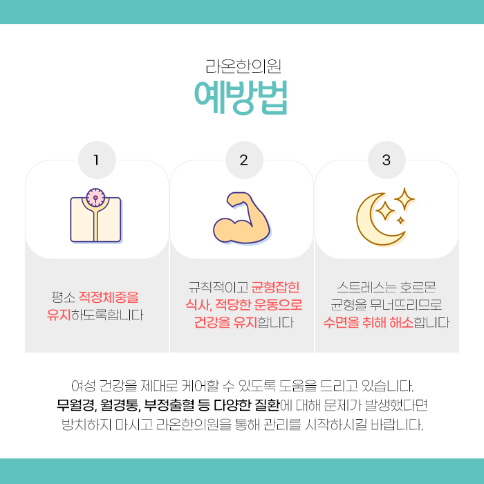 아랫배나 특정 혈자리에 뜸을 놓아 자궁을 따뜻하게 하고 혈액순환을 촉진하여 무월경을 개선합니다. 규칙적인 생활, 균형 잡힌 식단, 운동, 스트레스 관리 등 건강한 생활 습관을 유지하여 치료 효과를 높이고 재발을 방지합니다. 무월경은 방치할수록 치료가 어려워지고 합병증 위험이 커지므로 조기에 적극적으로 대전 무월경치료한의원 치료에 임하는 것이 중요합니다. 감사합니다.