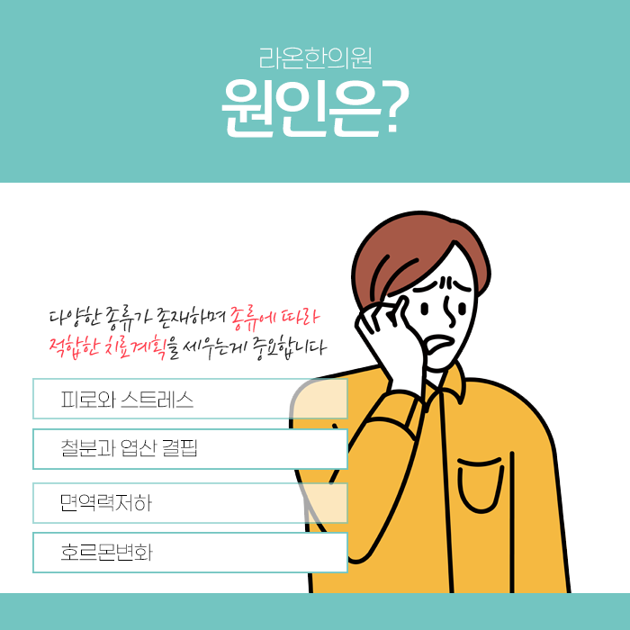 하지만 뚜렷하게 한 가지 원인으로 단정하기 어려울 정도로 복합적인 요인에 의해 발생하며 면역력 저하가 가장 주요한 원인 중 하나로 작용합니다. 면역력이 떨어지면 평소에는 문제가 되지 않던 바이러스나 세균이 활성화되어 유발할 수 있습니다. 또한 뜨거운 음식이나 음료 섭취로 인한 입안 상처, 볼을 씹거나 치아 교정 장치와의 마찰 등 물리적인 자극도 염증을 유발합니다.