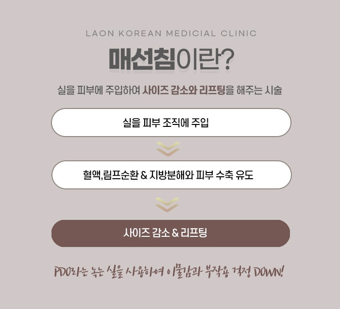 실이 삽입된 부위는 조직 재생 반응이 유도되어 시간이 지날수록 점차 피부가 조여지고 단단해지며, 표면적으로도 잔주름이 줄어들고 전체적인 윤곽이 정돈되는 결과를 기대할 수 있습니다. 이러한 작용은 인체가 가진 자연 치유력과 재생능력을 활용한다는 점에서 지속적인 변화를 가능하게 하며, 외부에서 인위적으로 무언가를 주입하거나 절개하는 방식과는 본질적으로 다른 접근입니다. 대전한방성형매선의 장점 중 가장 뚜렷한 것은 비침습적인 방식으로도 충분히 리프팅과 탄력 개선이 가능하다는 점입니다. 피부를 절개하거나 근육층을 강하게 자극하지 않고도, 실을 통해 미세한 견인력을 부여함으로써 피부 조직이 위로 당겨짐을 경험할 수 있으며, 이는 특히 예민한 피부를 가진 사람이나 회복 기간이 부담스러운 사람들에게 매우 적합한 방식입니다.
