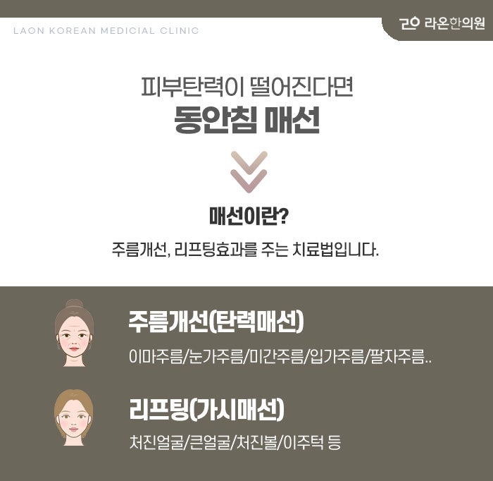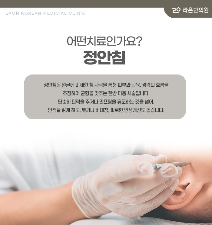 용전동정안침은 한의학의 침구요법 중에서도 미용과 기능 개선을 동시에 추구할 수 있는 특수 침술 기법으로, 피부의 근육 구조와 안면의 경혈을 섬세하게 자극하여 얼굴의 좌우 밸런스를 맞추고 탄력을 회복시키며 자연스러운 동안 이미지를 만드는 데 도움을 주는 시술입니다. 일반적인 침 시술이 주로 통증 감소나 내장 기능 조절, 순환 개선 등의 목적에 초점을 맞추는 반면, 정안침은 보다 정밀하게 안면부의 해부학적 구조와 생리적 흐름을 고려하여 얼굴의 미세한 근육층과 경혈, 경근에 자극을 주어 처진 근육을 끌어올리고 경직된 근육을 이완시키며, 나아가 안면윤곽을 정돈하고 균형 있는 인상을 만드는 데 목적을 둡니다.