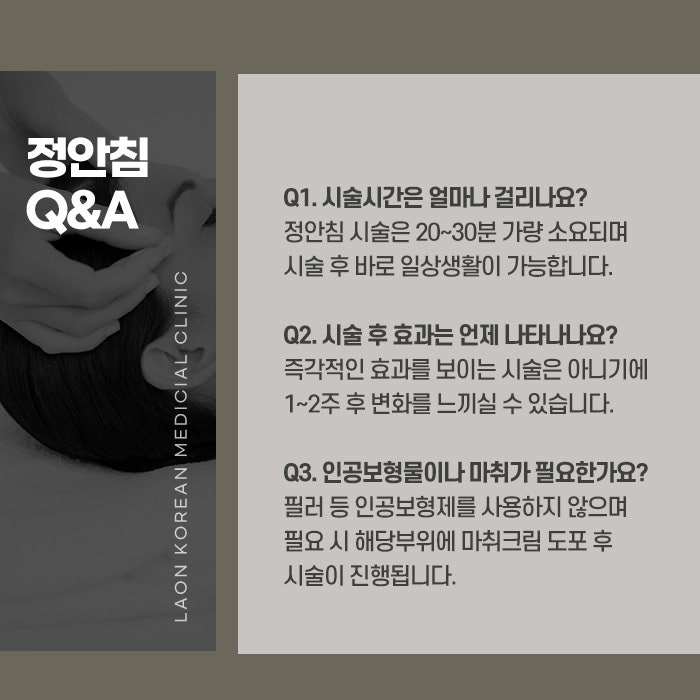 이런 기능적 회복은 단지 겉으로 보이는 미용 만을 의미하지 않고, 장기적으로 얼굴 근육과 피부가 스스로 건강하게 유지되는 데도 큰 역할을 합니다. 정안침은 이러한 원리 덕분에 시술이 단기적인 뷰티 트릭에 머무르지 않고 시간이 지날수록 더 자연스럽고 건강한 인상으로 변해가는 결과를 유도합니다.