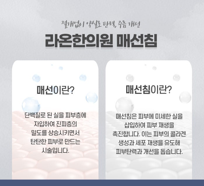 매선요법은 그러한 고유한 아름다움을 살려내는 데 집중하는 시술이며, 억지로 바꾸기보다는 피부와 근육, 윤곽이 스스로 제자리를 찾아가도록 돕는 섬세한 과정입니다. 수술적인 방법에 비해 부담이 적고, 자연스러운 회복과 장기적인 결과를 함께 추구할 수 있다는 점에서 매우 만족도가 높은 선택이며, 바쁜 일상 속에서도 나를 위한 짧고 안전한 투자로 여겨질 수 있습니다.