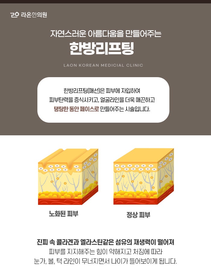 또한 피부의 전체적인 탄력이 저하된 경우에는 얼굴 전체를 감싸는 리프팅 매선을 병행함으로써 얼굴 윤곽선이 부드럽게 올라가고, 주름뿐 아니라 처짐까지도 함께 개선되는 결과를 얻을 수 있습니다. 과하지 않게, 조급하지 않게, 내 본연의 아름다움을 지켜나가고 싶은 마음. 그것이 매선요법이 많은 사람들에게 사랑받는 이유입니다. 거울 앞에서 자신을 마주하는 순간이 조금 더 따뜻하고, 일상 속에서 나를 대하는 마음이 조금 더 부드러워질 수 있도록, 오늘의 작은 선택이 당신의 내일을 더 아름답게 만들어주기를 바랍니다.