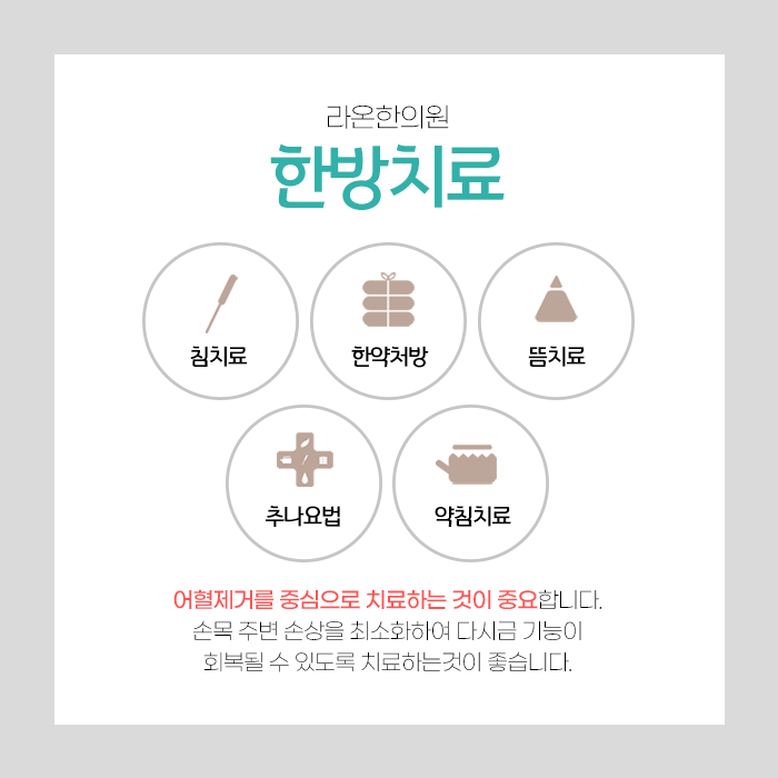 추나요법은 관절의 균형을 회복하고 신경이 자유롭게 눌리지 않고 지나갈 수 있는 충분한 공간을 상체 전반에 걸쳐 확보하게 합니다. 대전 손목통증으로 인해 불편함을 겪고 계신다면 신경계, 근육, 근막 등 손과 손목 주변의 모든 구조물들을 종합적으로 평가하고 손상 부위를 정밀하게 회복시키는 한방치료를 진행하는 것이 좋습니다. 증상 완화에 그치지 않고 원인을 찾아 개선하는 치료가 필요합니다. 감사합니다.