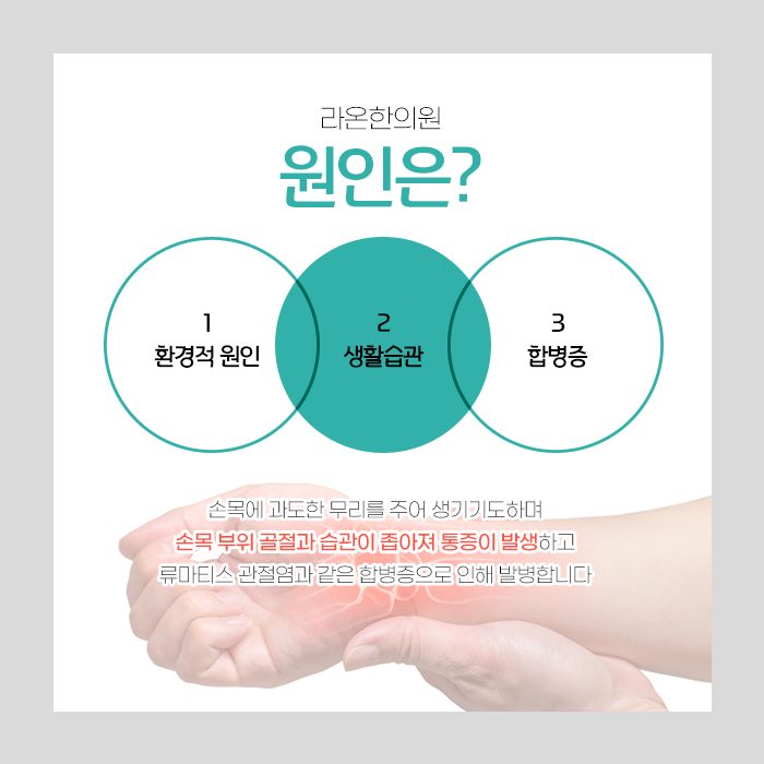 컴퓨터로 업무를 처리하는 시간과 스마트폰을 들여다보는 시간이 늘어나면서 손목이 찌릿하게 저리거나 대전 손목통증을 한 번쯤은 느껴보셨을겁니다. 오랜 시간 키보드를 타이핑하거나 마우스를 끊임없이 사용하는 경우 손목과 손가락에 반복적으로 찌릿거림과 시큰거림이 나타날 수 있습니다.