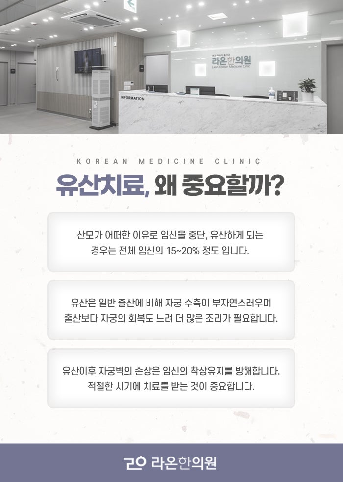 이러한 증상은 자연 유산이 진행 중임을 의미할 수 있으므로 즉시 의료기관을 방문하여 진단과 적절한 처치를 받는 것이 중요합니다. 일부 여성은 별다른 증상 없이 갑작스러운 임신 중단을 경험하기도 하며, 태아 심장 박동 소실이 초음파에서 확인되어 유산 진단을 받기도 합니다. 유산이 진행되면 출혈량이 증가하고, 심한 경우 빈혈이나 쇼크 상태에 이를 수 있어 신속한 치료가 필요합니다. 유산 후에는 자궁 내 잔류물로 인한 감염 위험이 있으므로 철저한 관찰과 처치가 중요합니다. 또한 유산 경험 후에는 정서적으로도 큰 상처를 받을 수 있어, 우울감, 불안, 죄책감 등이 나타나 정신적 지원 또한 필요하다고 대전동구유산후한약 한의원에서는 말합니다. 유산 후 한약 치료는 신체적 회복과 정서적 안정, 재발 방지를 목표로 하며, 출산과 임신 과정에서 소모된 기혈을 보충하고 자궁 환경을 개선하는 데 중점을 둡니다. 한의학에서는 유산 후 기혈허약, 신허, 혈어, 담음, 한습 등 여러 병리 상태가 복합적으로 작용하는 것으로 보아 체질과 증상에 맞춘 치료를 진행합니다.
