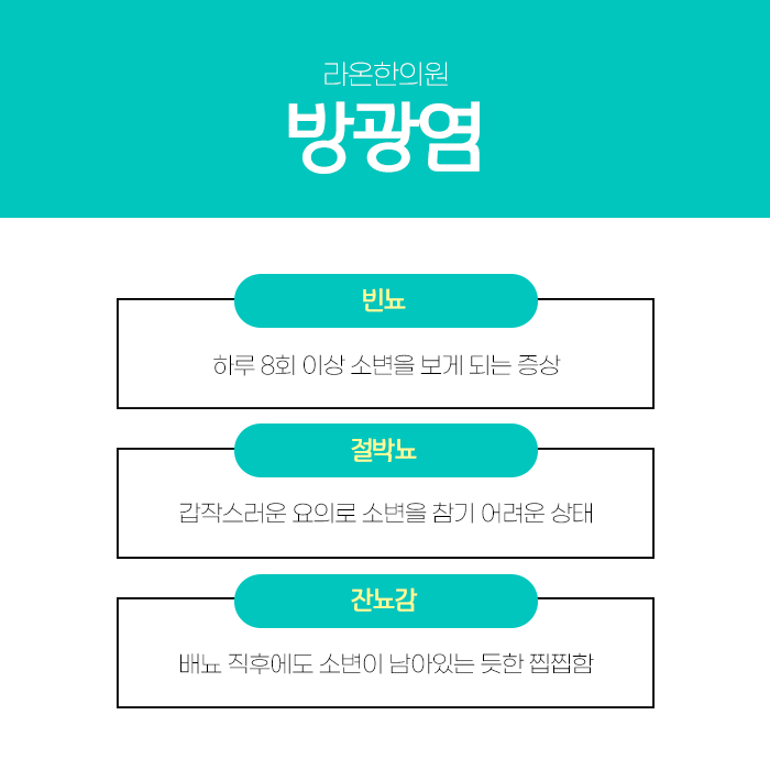 한방치료로 몸을 다스리시면 아픔이 차츰 경감되고 잦은 소변과 배뇨 후 찜찜함도 한결 가벼워지며 항생제 복용 없이도 건강을 되찾을 수 있습니다. 면역력이 튼튼해지면 외부 유해로부터 방광을 스스로 보호할 수 있게 됩니다. 감사합니다.