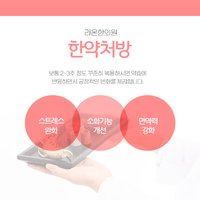 약재는 막힌 기혈의 흐름을 원활하게 하여 뇌와 근육 조직에 산소와 영양분 공급을 촉진하고 노폐물 배출을 돕습니다. 타고난 체질에 맞춰 약해진 오장육부 기능을 복원하고 컨디션을 강화합니다. 대전 두근거림, 소화불량, 불면증 등 다양한 동반 증상을 개선합니다.