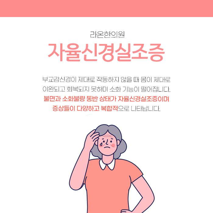 잠을 청하기 어렵고 자주 잠에서 깬다면 몸과 마음이 이완되지 않으면서 발생하는 대표적인 자율 신경 불균형 증상입니다. 머리가 맑지 않고 안개가 낀 것처럼 멍한 느낌이 지속되거나 갑자기 어지럼증이 나타나 중심을 잡기 어렵거나 눈앞이 캄캄해지는 경험을 하신다면 뇌로 가는 혈류량 조절이 원활하지 않거나 전신 순환 문제와 관련이 깊습니다.
