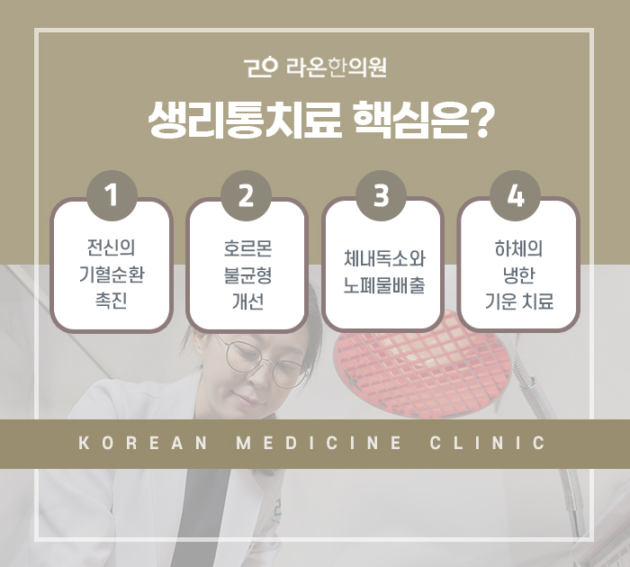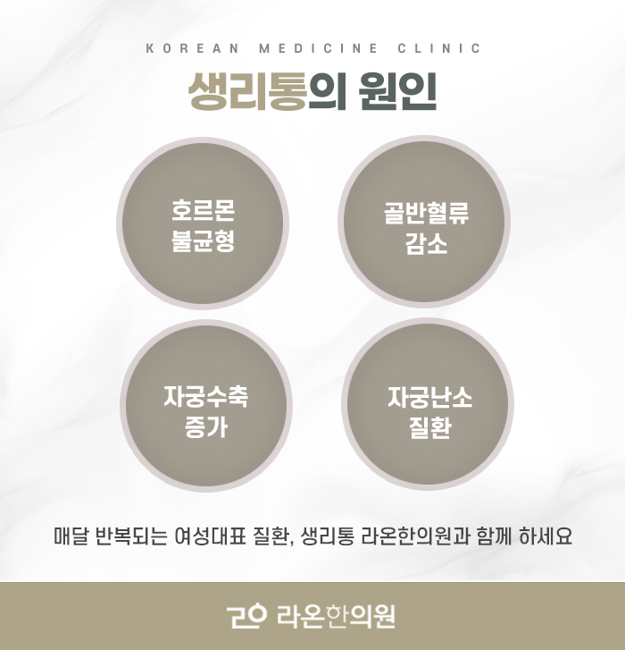 생리통이 발생하는 원인은 대부분 자궁이 차거나 자궁 기능이 허약해져서 또는 정체된 어혈로 인해 생리혈이 원활하게 배출되기 힘들어서입니다. 진통제나 경구피임약은 복용 중에만 일시적인 생리통 증상 개선이 가능할 뿐 추후 다시 극심한 생리통을 호소하게 됩니다. 어혈이 혈류순환을 방해해 자궁건강이 악화되면 극심한 생리통뿐만 아니라 자궁근종, 자궁내막증, 자궁선근증 등의 자궁질환으로 이어질 수 있기 때문에 생리통 심할 때 진통제에 의존하기보다는 대전동구생리통한약의 도움을 받으시면 좋습니다.