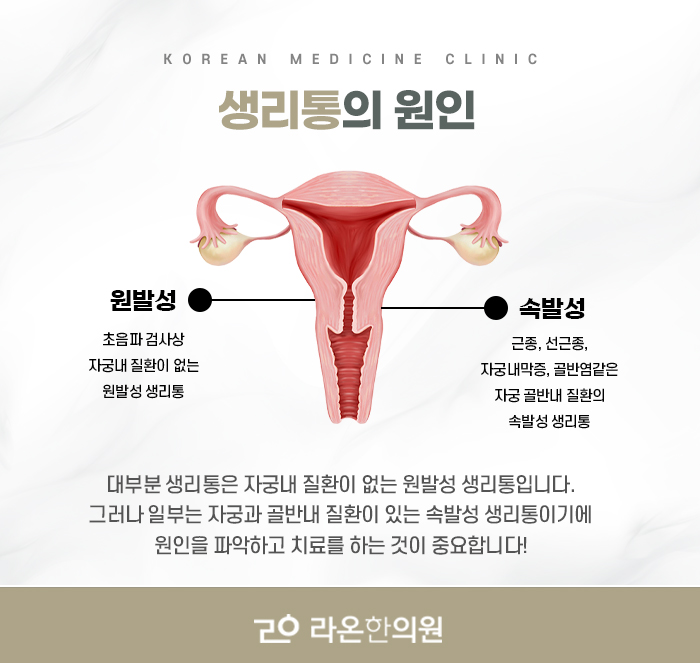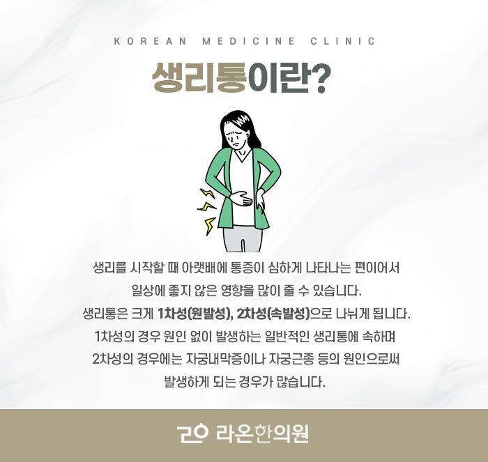 생리통과 생리주기를 정확하게 파악하며 의료진과의 정확한 원인 진단을 통해 자궁건강에 해로운 요인을 조기에 치료하고 예방하는 것이 좋습니다. 반복적으로 재발하는 생리통이나 진통제로도 나아지지 않는 생리통은 하나의 질환으로 인식하고 조속히 치료받는 것을 적극적으로 권장 드립니다.