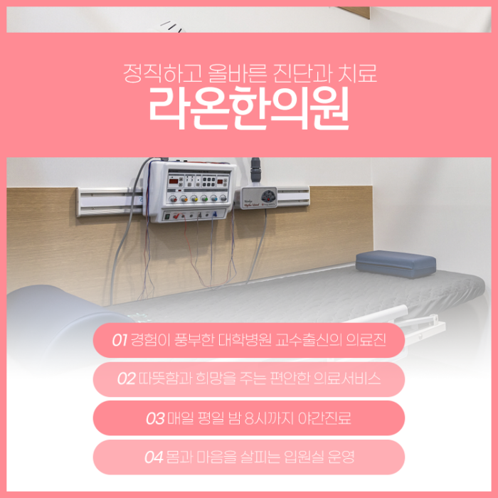 다양한 문제를 위해 포괄적인 진단과 치료를 제공합니다. 그럼에도 불구하고 통증이 계속된다면 한의학적인 관점에서 진단을 받아보는 것이 좋습니다. 환자마다 체질, 특성, 증상, 원인이 다르기 때문에 다양한 측면에서 분석하여 용전동교통사고가족입원 치료 계획을 수립하는 것이 중요합니다.
