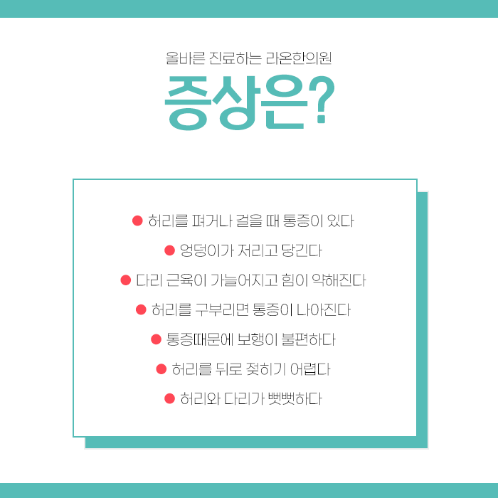 초기 증상을 간과하고 방치할 경우 상태가 악화되어 치료가 더욱 복잡해질 수 있습니다. 허리 통증이나 다리 저림, 근육 경련과 같은 증상이 나타날 경우 상담을 받는 것이 중요합니다.