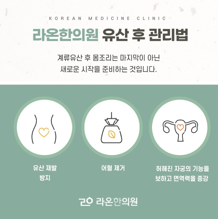유산은 여성의 몸은 물론 정신, 마음에도 큰 충격과 흉터를 남깁니다. 이 시기 유산후관리를 제대로 하지 않으면, 정상적인 생활로 회복하는데 어려움이 생길 수도 있으므로, 본인은 물론 주변의 의식적인 노력이 중요할 것입니다.