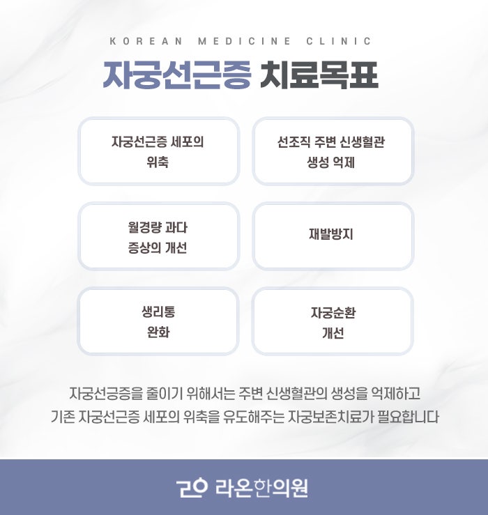 자궁선근증은 단순한 생리통으로 가볍게 여길 수 없는 질환입니다. 자궁 자체가 병들고 있는 과정이기 때문에 조기 발견과 체계적인 치료가 매우 중요합니다. 수술이 부담스럽거나, 임신을 계획하고 계신 분들이라면, 자궁의 환경부터 바로잡는 한방 치료와 올바른 생활습관으로 삶의 질을 되찾아보시길 바랍니다.