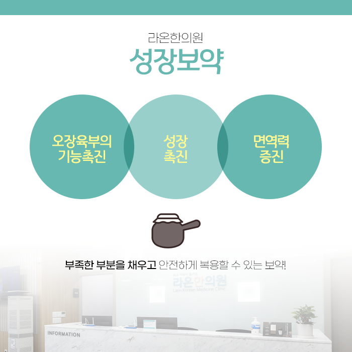 아이의 성장이 또래에 비해 더디게 진행되는 원인이 무엇인지 파악하고 문제를 개선해야합니다. 성장이라는 단어에만 집중하는 것이 아니라 몸 전체를 건강하게 만드는 것을 목표로 합니다. 대전 어린이보약 처방은 단 한두 번 복용하는 것만으로는 기대하는 큰 효과를 보기에 어려움이 있을 수 있습니다.