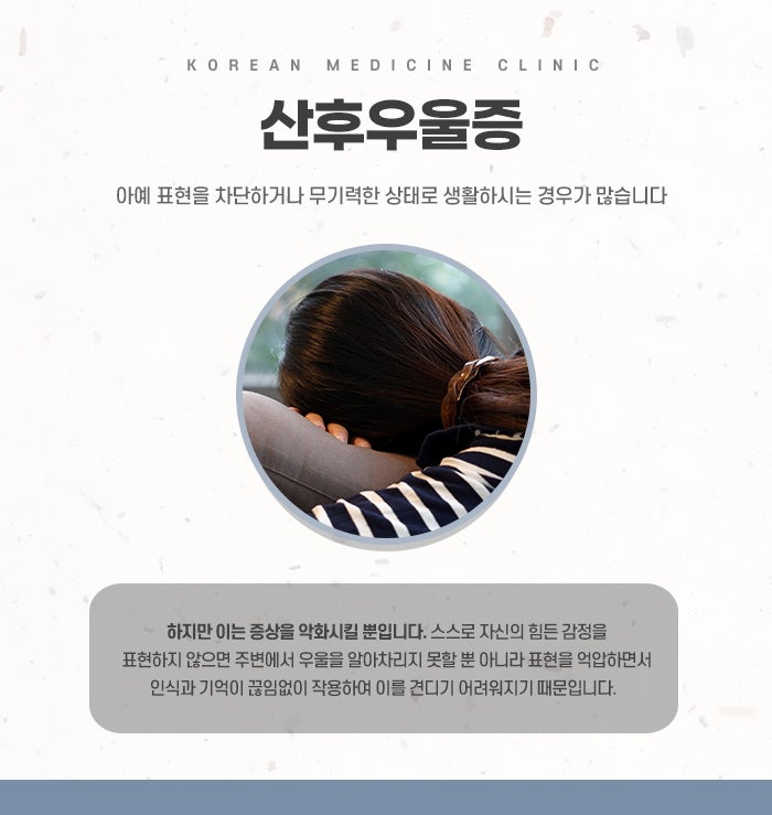 산후우울증은 출산 후 여성들이 겪을 수 있는 심리적 어려움 중 하나로, 호르몬 변화, 정신적 스트레스, 신체적인 피로 등 다양한 원인에 의해 발생할 수 있습니다. 출산 후 육체적 회복이 진행되면서, 새로운 엄마는 일상적인 육아와 함께 엄청난 변화와 압박감을 경험하게 됩니다. 이로 인해 우울감, 불안감, 피로 등을 겪으며 일상생활에 어려움을 겪는 경우가 많습니다. 산후우울증은 단순한 기분 변화와는 달리, 심각한 정신건강 문제로 발전할 수 있으며, 적절한 치료 없이 방치될 경우 엄마와 아기 모두에게 부정적인 영향을 미칠 수 있습니다. 이를 예방하고 대전산후우울증치료하기 위한 방법 중 하나가 한방치료입니다. 한방에서는 심리적 및 신체적 균형을 회복하는 데 중점을 두고 치료에 접근합니다.